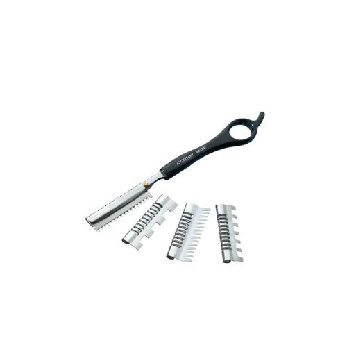 Profesionálna britva Comair Razor s 1 čepeľou a 4 rôznymi nástavcami, pre rôzne techniky strihu. Farba rukoväte: čierna.
